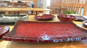 近藤さんの漆器は根来塗りで、使いこむと塗料が剥げて、下塗りの色がでて味わい深くなってきます。
