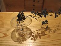 無垢の飾棚には新作のガラスが飾ってあります。ワイングラスや照明など・・・